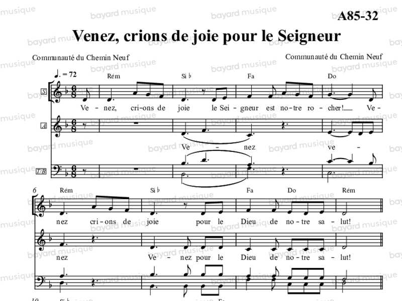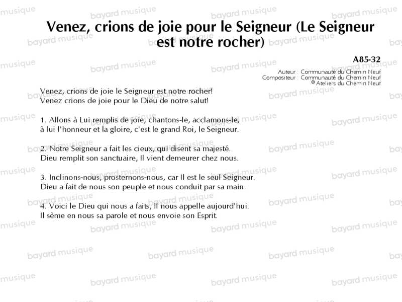 Venez, crions de joie pour le Seigneur (Le Seigneur est notre rocher) - A85-32