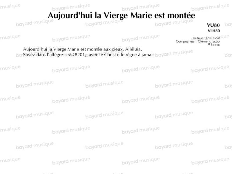 Aujourd'hui la Vierge Marie est montée - VU80