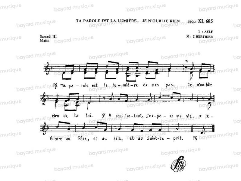 Ta parole est la lumière... je n'oublie rien repons - XL685