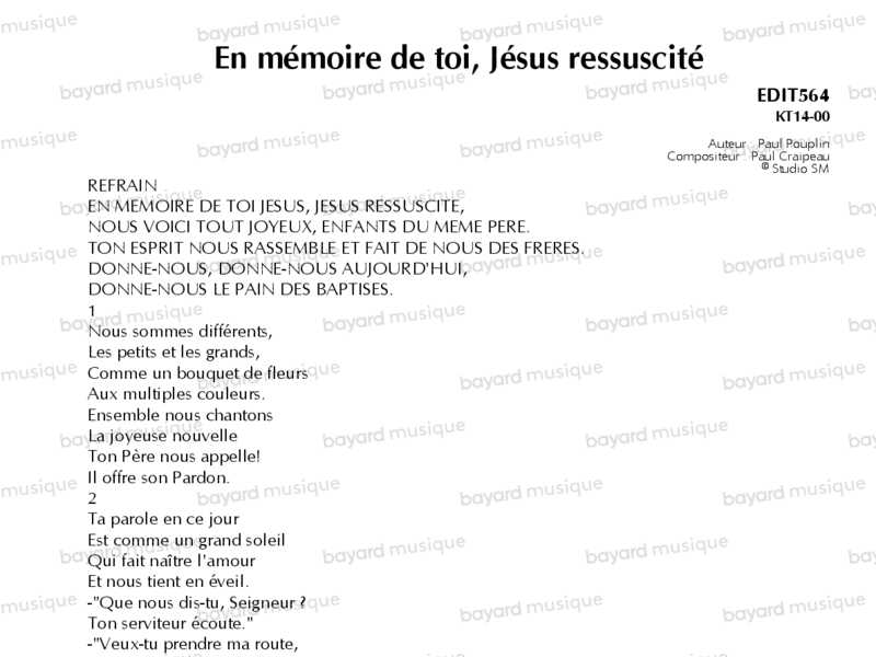 En mémoire de toi, Jésus ressuscité - EDIT564