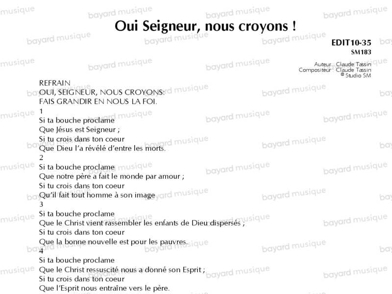 Oui Seigneur, nous croyons ! - EDIT10-35