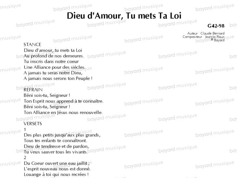 Dieu d'Amour, Tu mets Ta Loi - G42-98