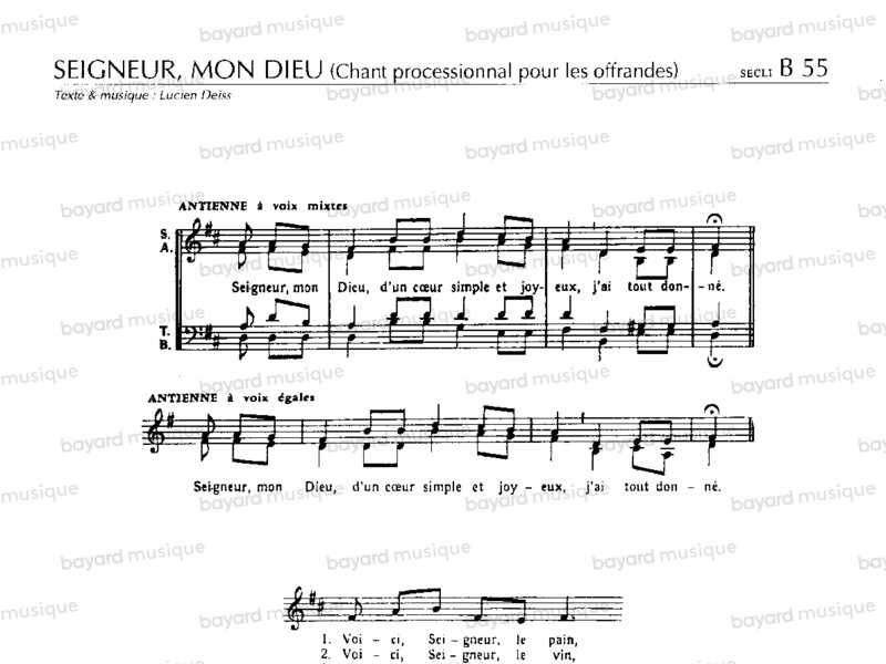 Seigneur, mon Dieu chant processionnal pour les offrandes - B55