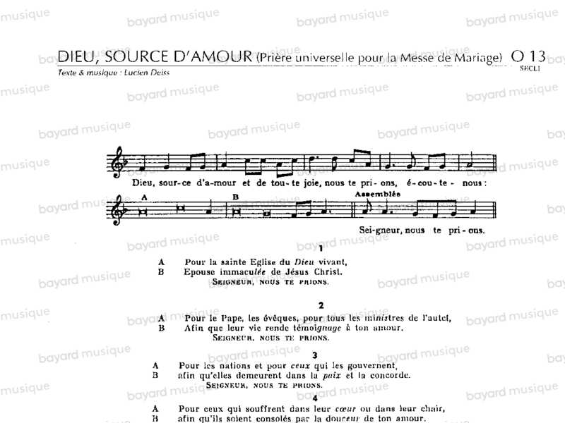 Dieu, source d'amour prière universelle pour messe de mariage - UO13