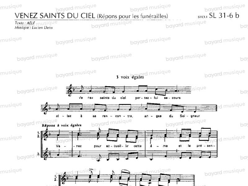 Venez Saints du ciel repons pour les funérailles - 3 voix egales - SL31-6b