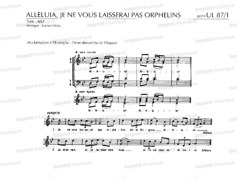 Alleluia, je ne vous laisserai pas orphelins acclamation a l'Evangile - 7èm - UL87-1