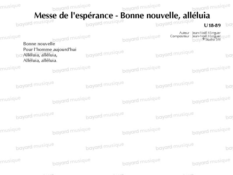 Messe de l'espérance - Bonne nouvelle, alléluia - U18-89