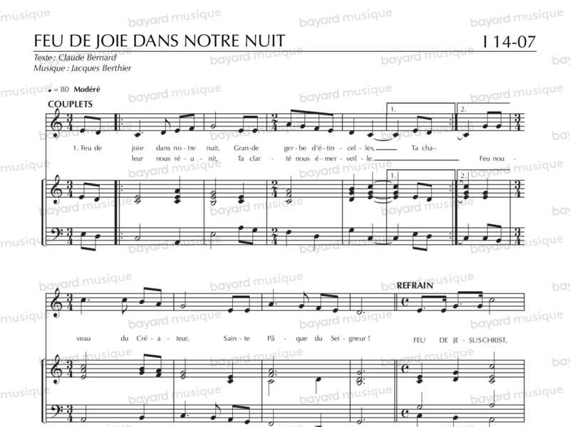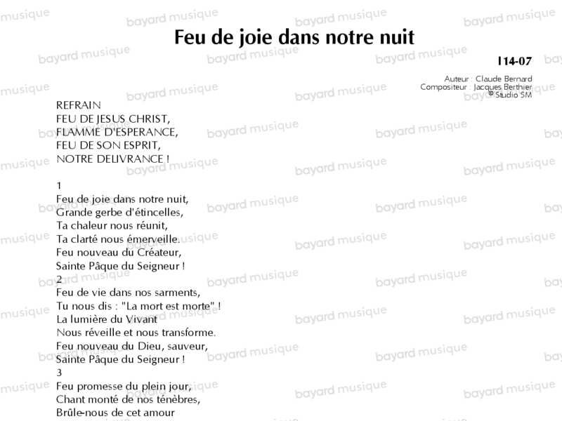Chant au feu nouveau lors de la Veillée Pascale après la bénédiction du feu et avant la procession. Il fait le lien entre tout ce que le feu peut évoquer chez les hommes (joie, lumière, chaleur, amitié) et la signification du feu nouveau de ce soir-là : la vie du Christ ressuscité, qui vient repousser les ténèbres et nous réchauffe, et le feu de l\'Esprit qui nous libère du mal et nous sauve de la mort.