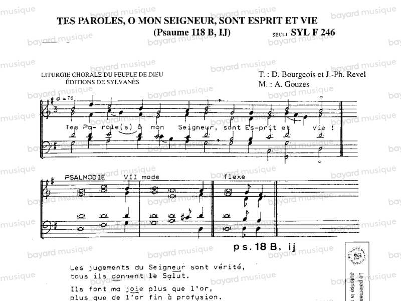 Tes paroles, ô mon Seigneur, sont Esprit et vie psaume 18 b,ij - Z18-6b