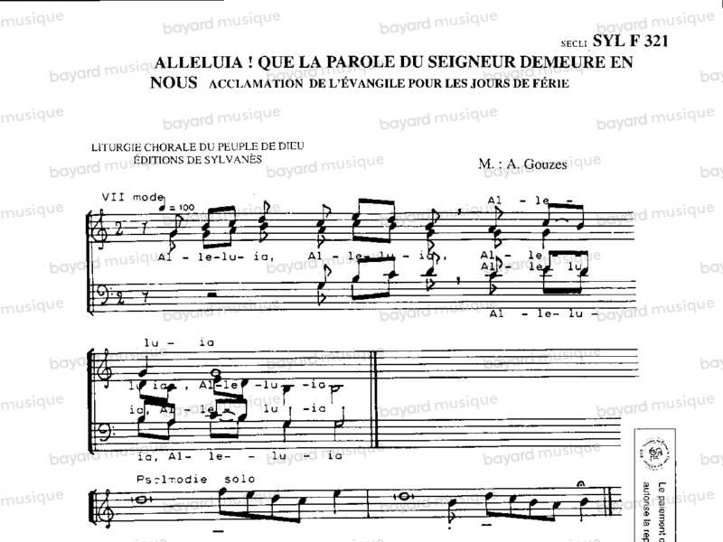 Alleluia ! que la parole du Seigneur demeure en nous acclamation de l’Evang - U711