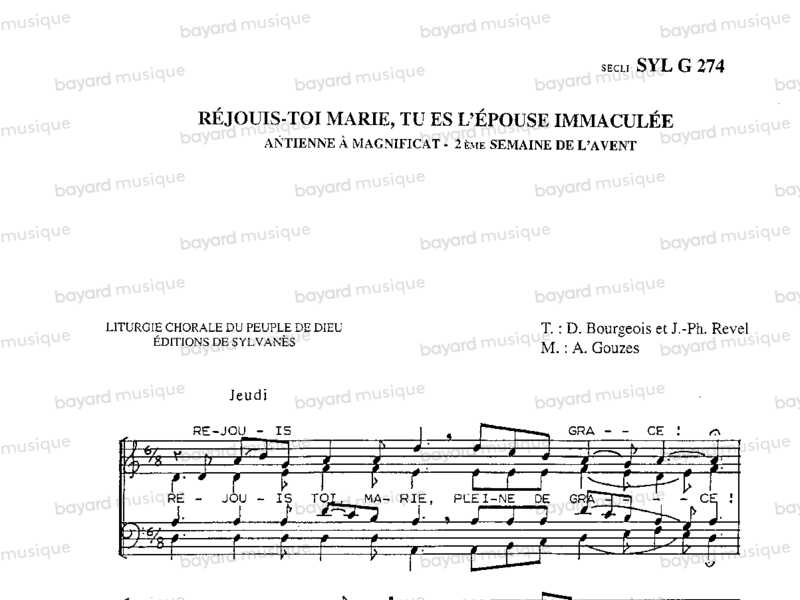 Rejouis-toi Marie, tu es l'epouse immaculee antienne a magnificat - 2ème se - EU274