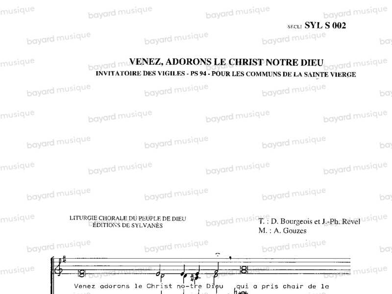 Venez adorons le Christ notre Dieu invitatoire des vigiles - psaume 94 - po - Z94-20
