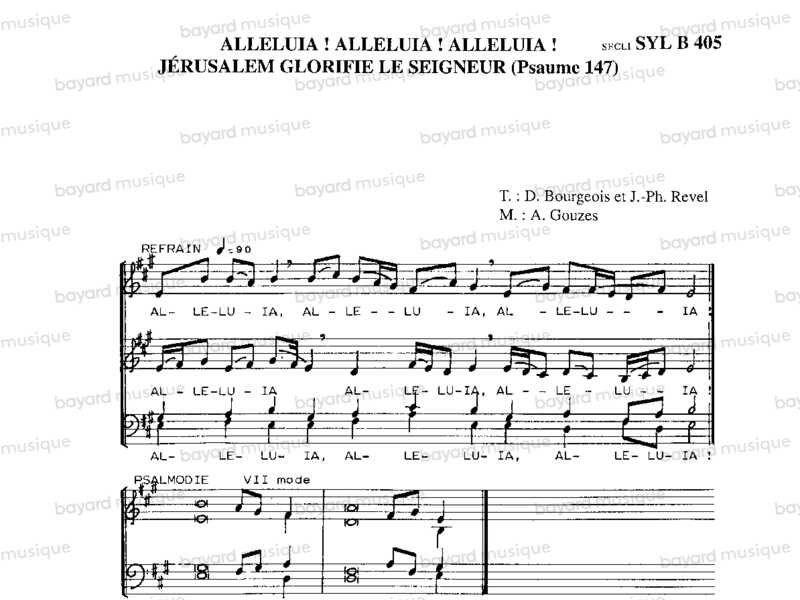 Alleluia ! Alleluia ! Alleluia ! Jerusalem, glorifie le Seigneur psaume 14 - Z147-3