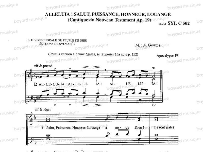 Alleluia ! salut, puissance, honneur , louange cantique du nouveau testamen - Z