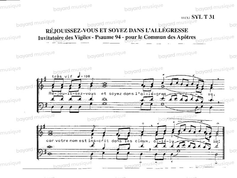 Rejouissez-vous et soyez dans l'allegresse invitatoire des vigiles - psaume - Z94-15