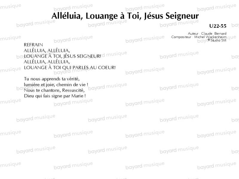 Alléluia, Louange à Toi, Jésus Seigneur - U22-55