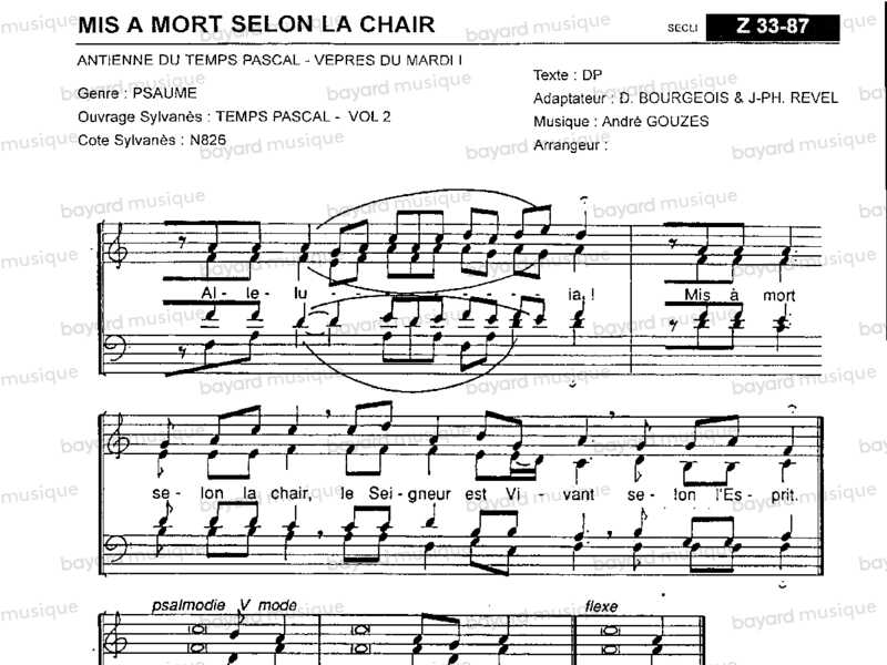 Mis a mort selon la chair antienne du temps pascal - vêpres du mardi i - Z42-7