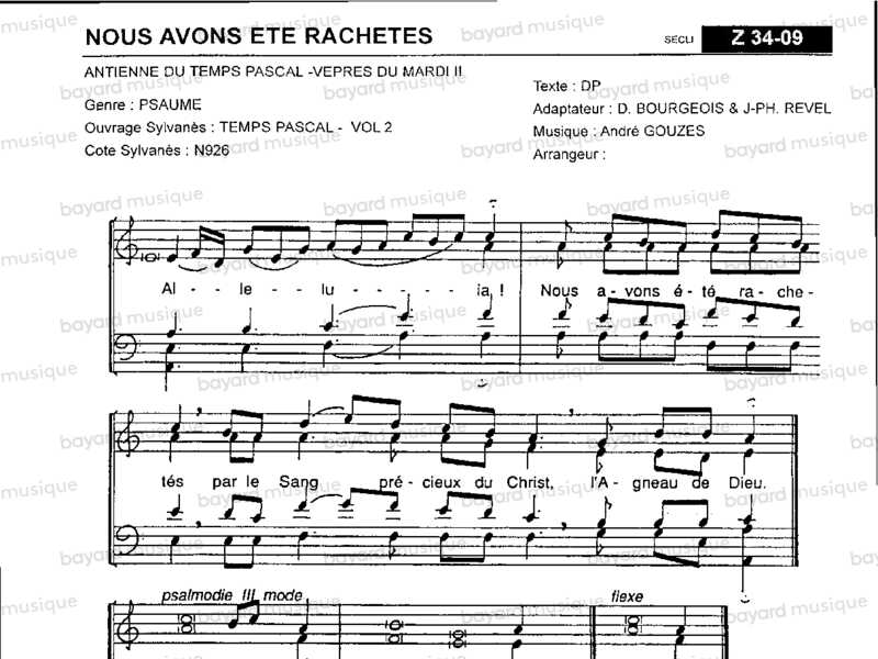 Nous avons ete rachetes antienne du temps pascal - vêpres du mardi ii - Z115-6