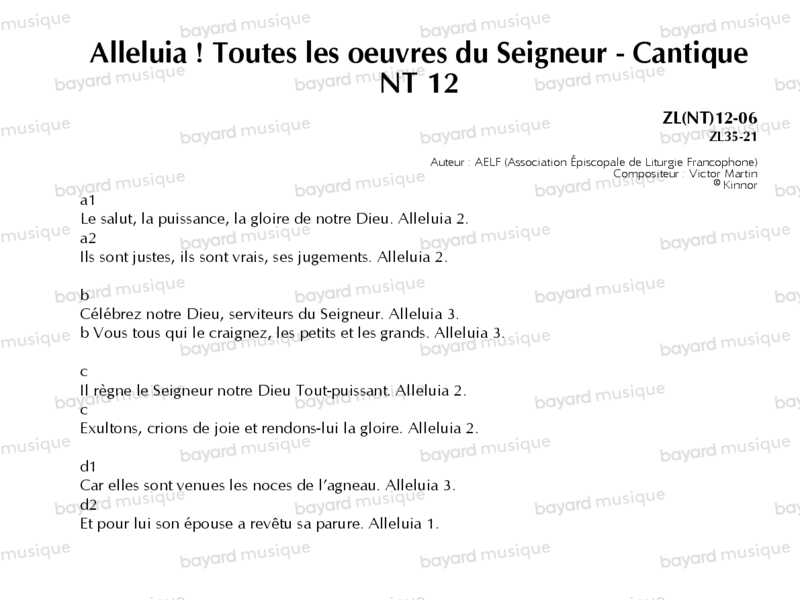 Alleluia ! Toutes les oeuvres du Seigneur - Cantique NT 12 - ZL(NT)12-06