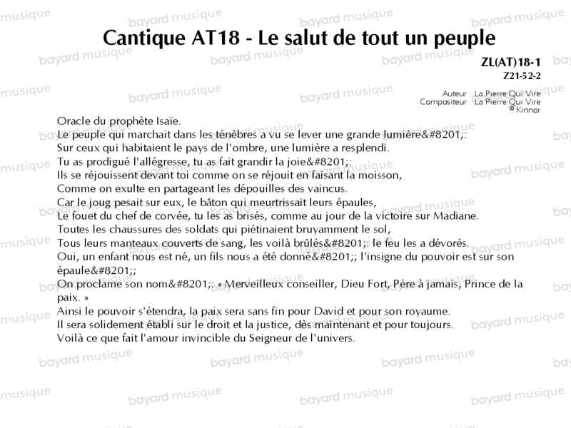 Cantique AT18 - Le salut de tout un peuple - ZL(AT)18-1