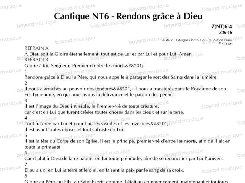 Cantique NT6 - Rendons grâce à Dieu - Z(NT)6-4