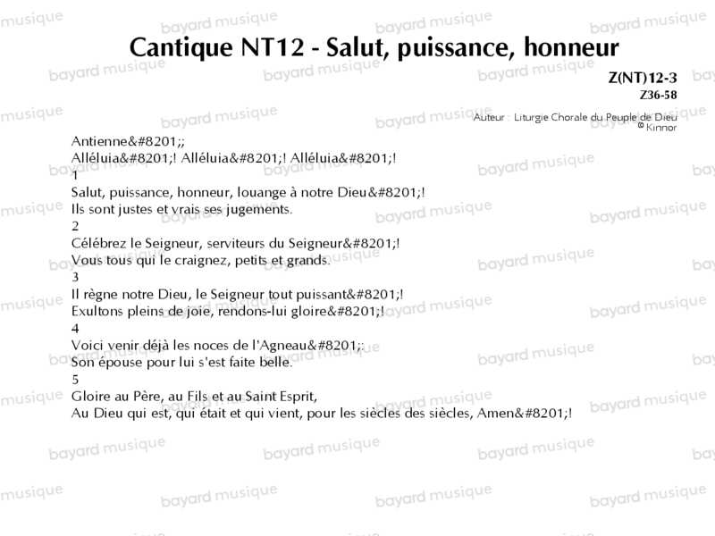 Cantique NT12 - Salut, puissance, honneur - Z(NT)12-3