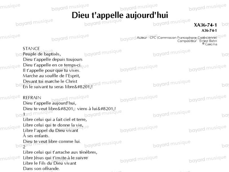 Dieu t'appelle aujourd'hui - XA36-74-1