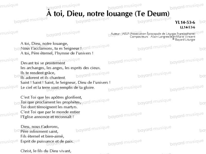 À toi, Dieu, notre louange (Te Deum) - YL14-53-6