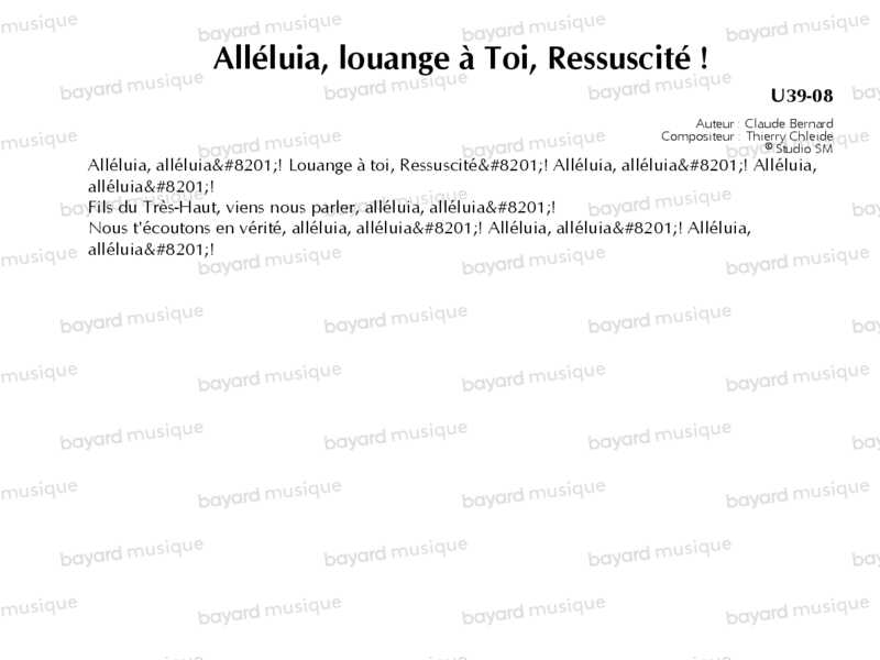 Alléluia, louange à Toi, Ressuscité ! - U39-08