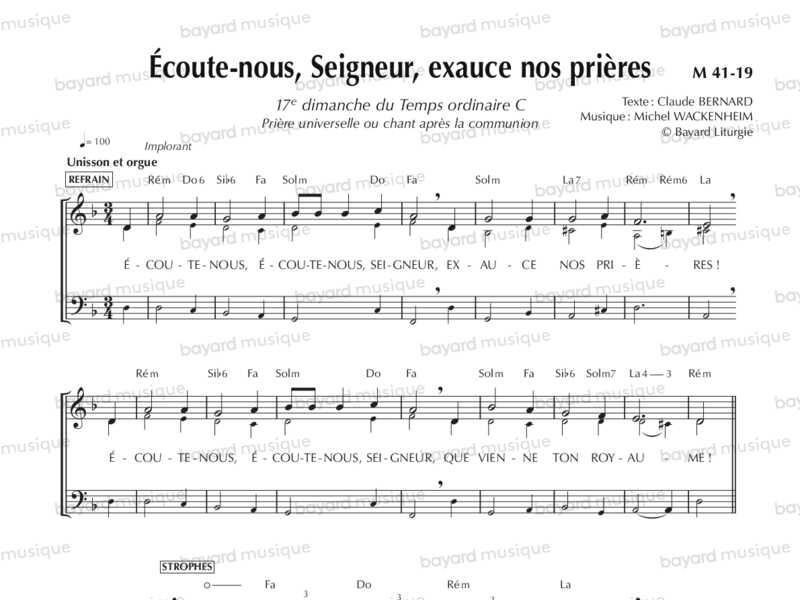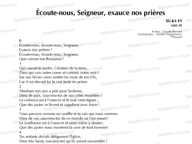 Écoute-nous, Seigneur, exauce nos prières - XU41-19