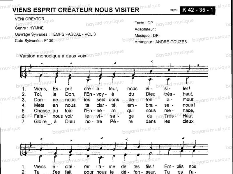 Viens Esprit créateur nous visiter veni creator - K42-35-1