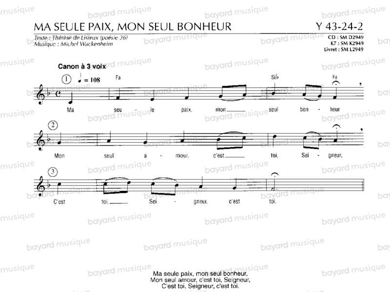 Ma seule paix, mon seul bonheur canon a trois voix - Y43-24-2