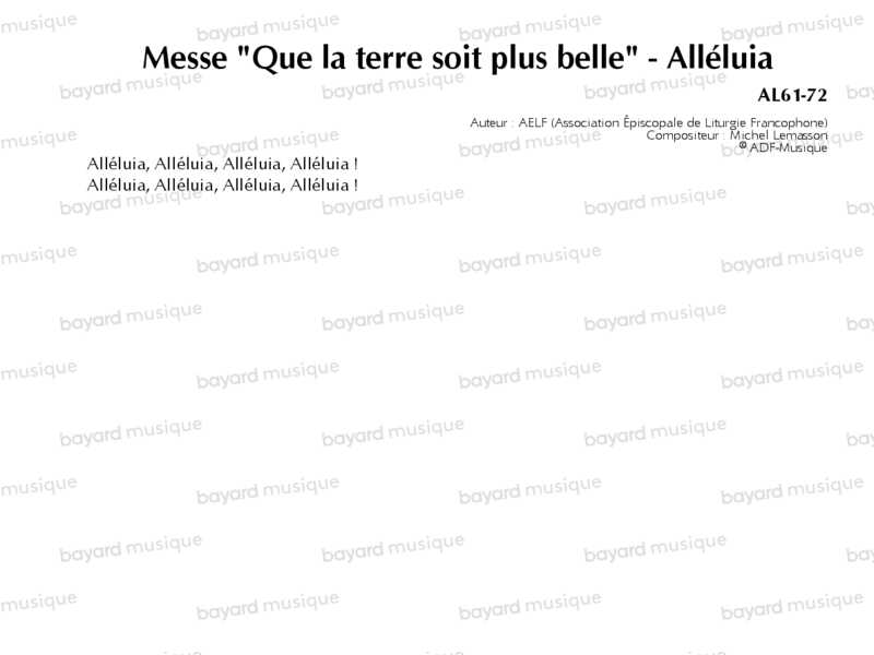 Messe "Que la terre soit plus belle" - Alléluia - AL61-72