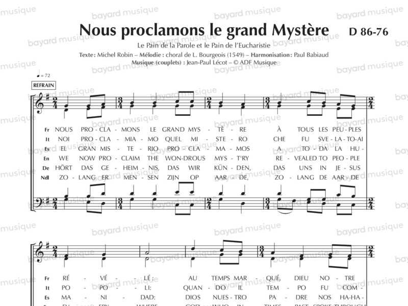 Partition en français, italien, espagnol, anglais, allemand et néerlandais.
