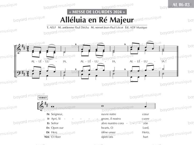 Alléluia en Ré majeur avec Coda d’Alléluia - AL86-83